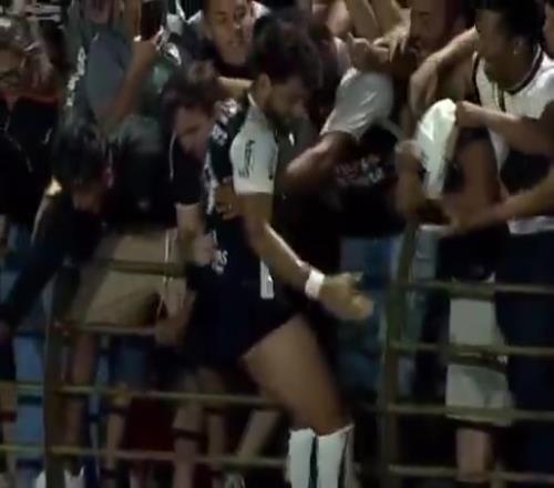 尴尬又无奈!科林蒂安球员打进绝杀球激情庆祝,球裤被球迷扯掉
