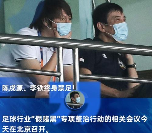 早些时候足球行业“假赌黑”专项整治行动相关会议在北京召开,其中公安等多部门联合通报了对于中国足球职业联赛假赌黑的专项惩治情况,其中包括对于涉事俱乐部教练和球员进行了相关处罚。申花天津门虎被罚10分,罚款100万。同时第二批禁足名单已经出炉,包含陈戌源李铁等73人被终身禁足。