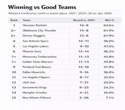 根据数据统计显示,火箭队开赛至今面对胜率超过50%的强队时,战绩为14胜8负,胜率高达63.6%,力压雷霆与掘金高居西部第一。